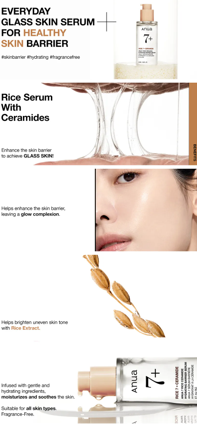 Oryza Sativa (Rice) Bran Water, 1,2-Hexanediol, Oryza Sativa (Rice) Extract, Dipropylene Glycol , Glycerin, Methylpropanediol , Butylene Glycol, Methyl Gluceth-10 , Niacinamide , Water, Hydroxyethyl Urea, Glycerin, Water, Caprylic/Capric Triglyceride, Hydrogenated Lecithin, Ceramide NP, Panthenol, Water, Water, Polyquatemium-51, 1,2-Hexanediol , Water, 1,2-Hexanediol, Sodium Hyaluronate, Ethylhexylglycerin, Tocopherol, Water, Butylene Glycol, 1,2-Hexanediol, Corchorus Olitorius Leaf Extract , Nelumbo Nucifera Root Extract , Hibiscus Esculentus Fruit Extract , Dioscorea Japonica Root Extract, Angelica Keiskei Extract, 1,2-Hexanediol, Pentylene Glycol, Water, Glycerin, 1,2-Hexanediol, Beta-Glucan, Sodium Polyacrylate, Water, Carbomer, Ethylhexylglycerin, Tocopherol, Adenosine, Allantoin, Sodium Phytate, Xanthan Gum, Alpha-Arbutin, Water, Butylene Glycol, 1,2-Hexanediol, Oryza Sativa (Rice) Extract, Water, Butylene Glycol, 1,2-Hexanediol, Dipropylene Glycol, Oryza Sativa (Rice) Extract, Hydrolyzed Rice Protein, Oryza Sativa (Rice) Seed Protein, Ceramide NP, Water, Butylene Glycol, 1,2-Hexanediol, Defatted Rice Bran Extract, Arbutin, Water, Butylene Glycol, 1,2-Hexanediol , Honey Extract, Water, Butylene Glycol , 1,2-Hexanediol , Hyaluronic Acid, Ethylhexylglycerin, Hydrolyzed Hyaluronic Acid , Sodium Hyaluronate, Zinc Stearate, Oryza Sativa (Rice) Bran, Defatted Rice Bran